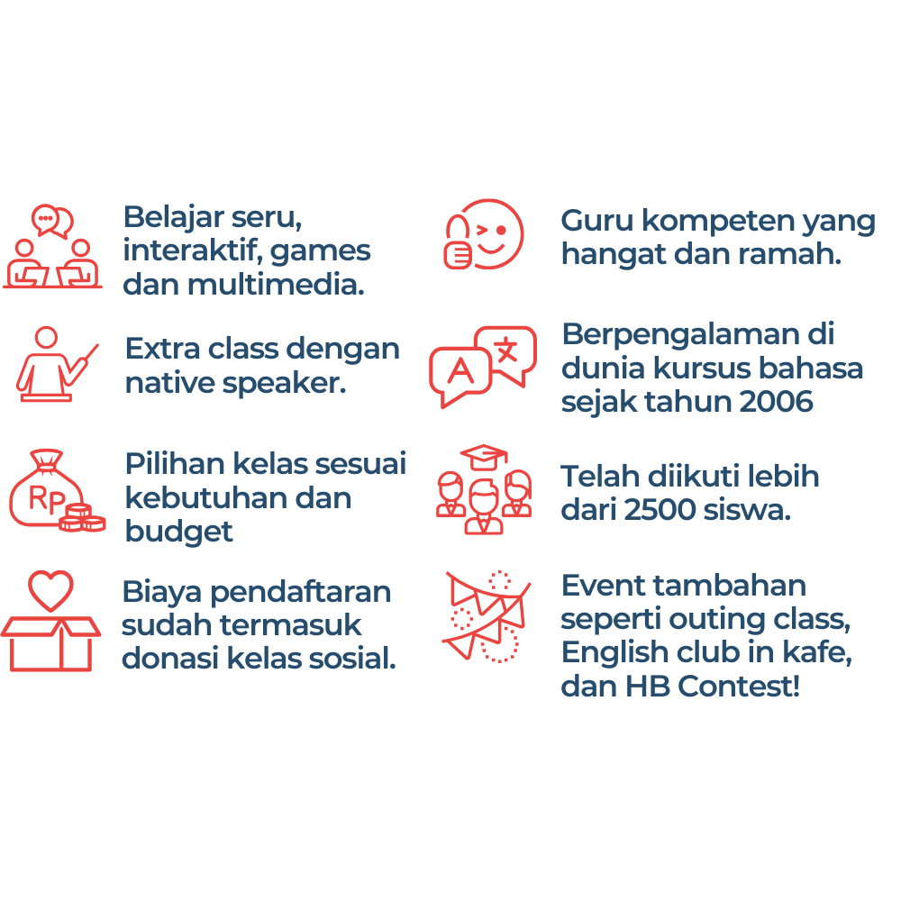 disertai aneka games, video dan metode seru lainnya. Dengan pengajar yang ramah dan kompeten,